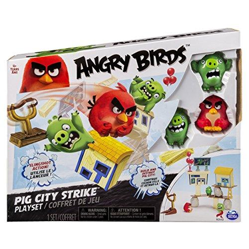 The Angry Birds Pig City Strike Playset is for kids ages 4+. No batteries required.