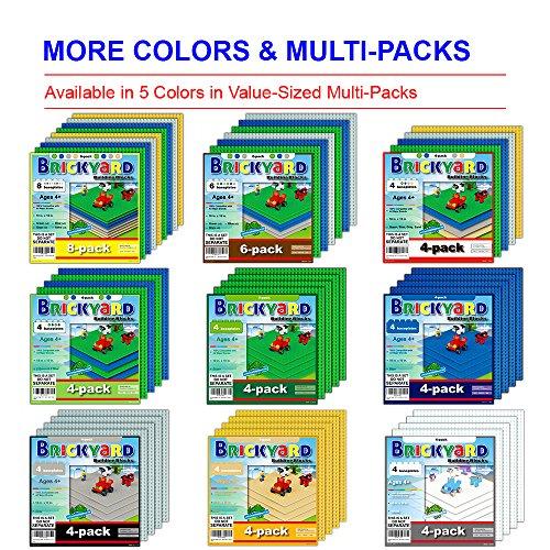 #DESCRIPTION_TAB#Brickyard Building Blocks 4 Green Baseplates, Improved Design 10 x 10 Inches Large Thick Base Plates for Building Bricks, for Activity Table or Displaying Compatible Construction Toys (4-Pack, Green)