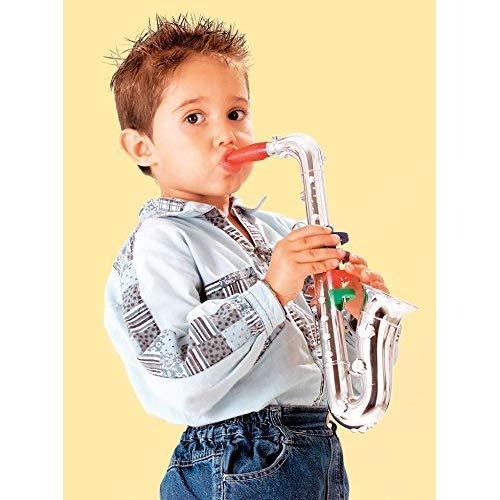 Click n' Play Set of 2 Musical Wind Instruments for Kids - Metallic Silver Saxophone and Trumpet Horn
