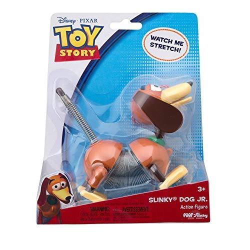 Disney Pixar Toy Story Slinky Dog Jr. is the scrappy little pup of the Slinky Dog family. Great for kids with small hands and big imaginations, Slink Jr. measures 4.5in. from head to toe and 6in. from nose to end with a 3in. spring tail. Body stretches up to an additional 8.75in. long, so if the going gets tough, this pup gets growing! Recommended for children 3 years of age and older.