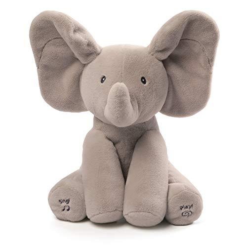 GUND is proud to present Flappy the Elephant - an adorable singing animated plush with two different play modes. Press the left foot to play an interactive game of peek-a-boo, and the right to hear the song "Do Your Ears Hang Low" in a cute child's voice. Ears move and flap during play. Surface-washable for easy cleaning. Appropriate for all ages. Three "AA" batteries included with purchase. About GUND: Since 1898, GUND has been a premier plush company recognized worldwide for quality innovative products. Building upon award-winning designs, we continue to develop original and licensed products to appeal to the next generation of customers. Each of our plush toys is constructed from premium materials for unparalleled softness and huggability.