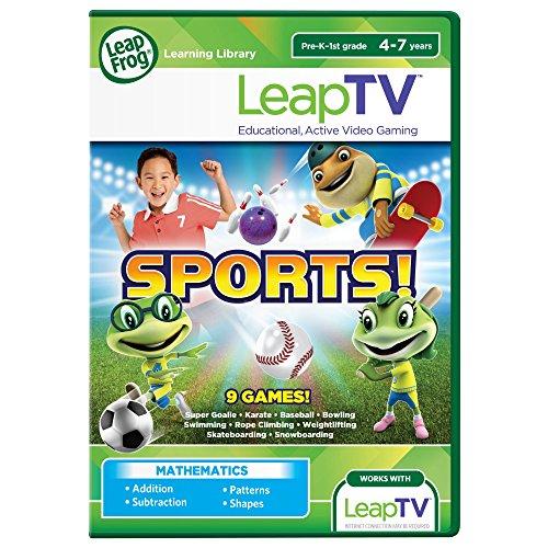 New! LeapTV, the first Educational, Active Gaming System for kids featuring LeapTV Sports brings all the fun and motion of sports into your home with nine action-packed learning games for children ages 4-7. Children dive into fractions, hit a home run with subtraction, karate-chop shapes, skate to complete patterns, climb up to number recognition-all while having a blast and seeing themselves on TV. In LeapTV Sports for LeapTV gaming systems, enter a whole new arena of sports fun hosted by Leap, Tad, Lily and the crew. Children can invite friends or family members to team up for soccer/football, bowling, baseball, karate, skateboarding, snowboarding, swimming, rope climbing and weight lifting. They can select favorite sports in Quick Play mode, or play through a variety of sports in Event Challenge mode. Whichever way they play, it all adds up to active fun with their favorite LeapFrog characters! (Multiplayer feature requires a single controller.) Your child is right in the center of the action with LeapTV. Be a Super Goalie: Jump into the goal to block number-line-powered shots. The more balls blocked, the higher the score! Step up to the baseball plate and hit a home run; power up the bat with subtraction skills. Steer the skateboard toward the correct gate to complete a pattern or number sequence, and do tricks along the way to the finish line. Karate-chop, kick and roundhouse fast-moving 2D and 3D shapes. Clear the screen by recognizing the correct shapes. When children get moving and see themselves on TV, they'll have a ball learning! "The mathematics curriculum automatically adjusts to each child's learning level, from recognizing numbers and comparing sets to skip counting and comparing fractions. Nine different sports provide opportunities to practice a variety of mathematics skills."-Pamela G., PhD, LeapFrog Learning Expert Works with LeapTVTM gaming system (sold separately). Internet connection may be required for programming update. (Multiplayer feature