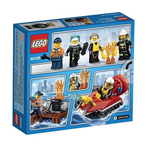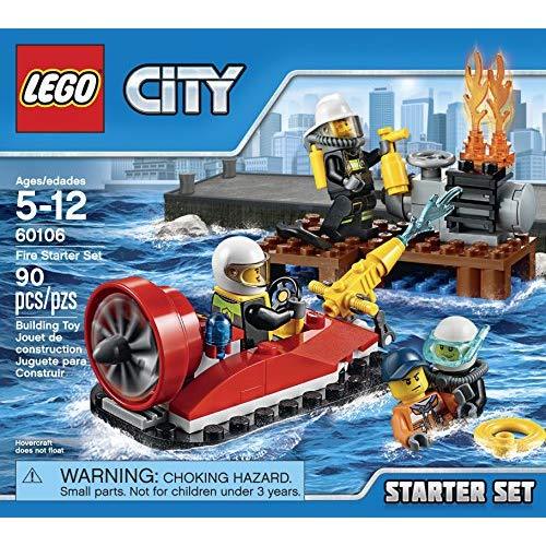 Get into the firefighting action on land and water with the LEGO City Fire Starter Set, featuring a fire hovercraft with a turning propeller, pier with engine and fire element, plus accessories. Includes 4 minifigures: 2 male firefighters, a female firefighter and a dockworker.