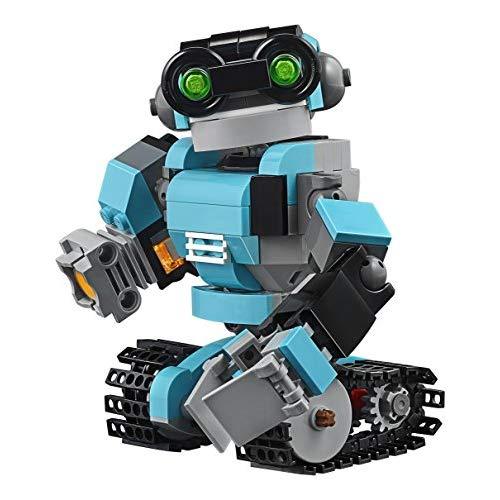 Impress your friends with this awesome robot toy! this characterful Robo Explorer features an azure, black and gray color scheme, bright-green eyes, working tracks, rotating body and head, and posable arms with working claw and searchlight. Rebuild this 3-in-1 LEGO Creator 6175250 into a robot dog with a light-up jet pack or a robot bird with light-up eyes!