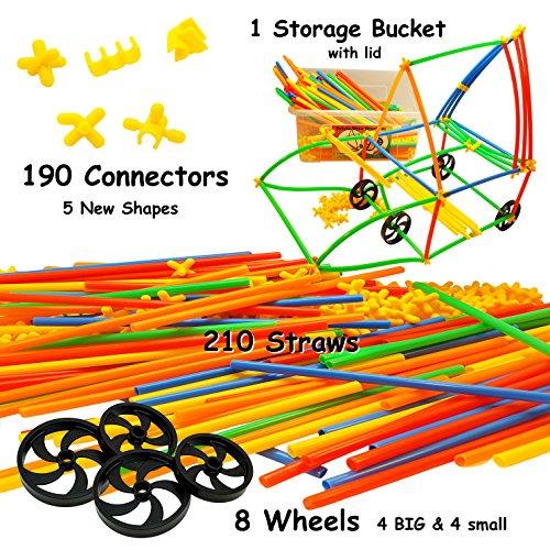 CONSTRUCTION TOYS: These educational creative STEM learning toys are open-ended building toy for girl and boy ages 3, 4, 5, 6,7 years old. Allows childrens time for self-directed play to design & build from their own imaginations. Kids will launch rockets, race cars, build forts & houses with these straw kit connector toys with WHEELS. The straws and wheels connector building for kids set is a must have in every toy collection. SAFE & WASHABLE Non-toxic materials with no BPA or Phthalates.
