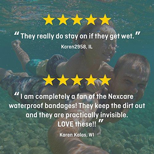 Designed to stay on in wet conditions and keep the water out, Nexcare Waterproof Bandages protect minor wounds like scrapes, cuts and blisters during cooking, cleaning, exercising, gardening, swimming, fishing and other outdoor activities. Ultra-thin, breathable construction with a 360-degree seal that protects against water, dirt and germs to help prevent infection. Made with a clear flexible backing and non-stick pad, these bandages easily adhere and conform to fingers, elbows, knees and other hard-to-cover parts. Nexcare Waterproof Bandages deserve a spot in every first-aid kit, offering reliable-wound care that keeps you moving at your everyday pace.