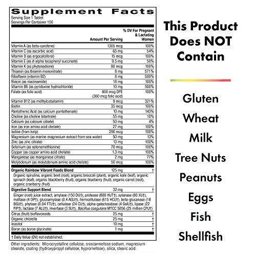 This best-selling natural multivitamin delivers food-based, potent and digestion-enhanced nutrition in just one tablet per day. Screened for vegetarians and vegans to be free of anima products. Now guaranteed AllergenSafeguard (free of gluten, soy, yeast, fish/shellfish, nuts, dairy) and with 90 million bioactive probiotics. Also free of artificial colors, flavors, sugar, sweeteners, preservatives, and other objectionable additives often found in vitamin products.
