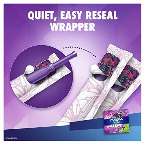 Tampax Radiant super plastic tampons give you the confidence and freedom of up to 100% leak & odor-free protection. Our quietest tampon wrappers are fierce, fun-patterned, and re-sealable! Tampax Radiant tampons have a CleanGrip applicator designed for incredible comfort and a LeakGuard Braid that helps stop leaks before they happen. So don't let a little thing like your period stop you from living life to the fullest.