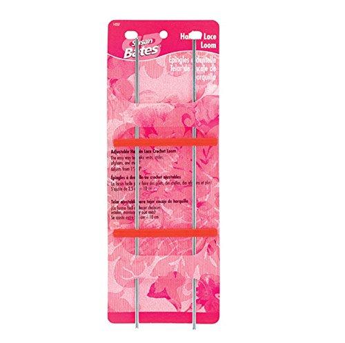 Adjustable aluminum hairpin lace loom measures 14 and is adjustable to widths of 1 1-1/4 1-3/4 3-1/2 2-3/4 and 4.