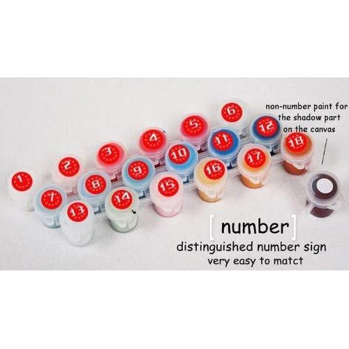 Painting Construction: You can decide the drawing turn according to your personal favor or in turns of the numbers For the white paint and other light color paint part, the figures left on the canvas may be seen, you can double use the paint and try to cover with the thick paint the paint: use the paint directly and do not add any water the match the number of the paint and the figure on the canvas to fill in the paint if you careless to fill in a wrong color, you can wait the paint to get day and then cover the wrong part with the correct color on the surface the brush: wash the brush cleanly when you change to another color for the large part, you can use the larger brush to paint, and for the small part, you can use the smaller brush to paint wash the brush cleanly every time you finish painting for the next time use the canvas: professional canvas design for DIY oil paint Note: Wood Frame does not included For the Solid Wooden Frame, Please visit our storefront or search ASIN B00KD8HQ6K. Attention: If you happen to have the paint on your clothe, please wash it immediately. Please cover the lid of paint well when you do not use it, in case the paint gets dry. The figures on the canvas may not be covered entirely, hope you do not mind. ANY OTHER QUESTION, PLEASE CONTACT US. THANK YOU.
