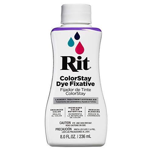 We want your dye projects to stand the test of time. That’s why we created Rit ColorStay Dye Fixative, an easy-to-use solution designed to lock in color, keeping your fabrics looking their best and brightest for the long run. It reduces bleeding, fading and even enhances the color of your project. Works best on cotton, linen, rayon, ramie or fabric blends that contain these fibers. Use after dyeing to lock in color. Or use it immediately after a tie-dye or dip-dye project to prevent dye from bleeding into white areas. It is even effective on commercially dyed fabrics. Whatever your purpose, Rit ColorStay Dye Fixative assures you will get lasting color for the long run.