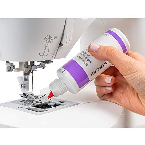 Use SINGER All Purpose Machine Oil to keep your sewing machine running smoothly. The oil eliminates friction between touching metal parts and prevents damage caused by abrasion and rust. The specially formulated lubricant can be used on sewing/knitting machines, vacuum cleaners, household appliances, typewriters, computers, bicycle gears and other appliances. Comes in a 4-ounce bottle.