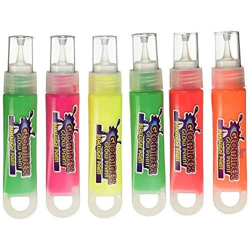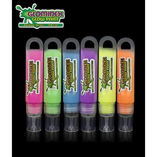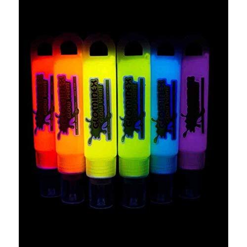 Glominex H60, 6 Pcs, 1 Oz, Assorted Glow in The Dark Paint Tubes, Glow Paint, Glow-in-The-Dark Party Supplies, Glowing Paint, Glow in The Dark Body Paint, Light Up Body Paint