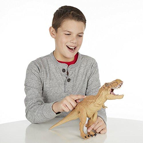 A menacing thump. The water ripples. The earth shakes. It’s Tyrannosaurus Rex, and the dino-stomping monster who’s ready for a massive dinosaur showdown! One bite from this master of disaster’s chomping jaw and it’s all over. Get a giant bite on your next adventure with this chomping, stomping Tyrannosaurus Rex figure! Jurassic World is a trademark and copyright of Universal Studios and Amblin Entertainment, Inc. Licensed by Universal Studios Licensing LLC. Hasbro and all related terms are trademarks of Hasbro.