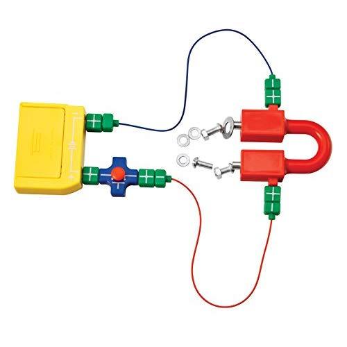 Product Description Conduct more than 60 electrifying experiments with circuits and magnets to learn about electricity and magnetism. Build series and parallel circuits to light up a light bulb. Experiment with push buttons and on-off switches. The blocks are brightly colored, unique shaped, and easy to build with. From the Manufacturer Conduct more than 60 electrifying experiments with circuits and magnetic contraptions to learn about electricity and magnetism, and how these two fundamental properties are closely related. Children eight and up can safely and easily experiment with electric current and magnetic fields using the colorful snap-together blocks and components in this hands-on kit. Build series and parallel circuits to light up a light bulb. Experiment with push buttons and on-off switches. Assemble circuits that include a spinning motor, two switches, and up to three light bulbs. Conduct tests to see which materials are magnetic. Learn about the force of magnetism and magnetic poles. Magnetize a metal. Use iron fillings to make invisible magnetic fields visible. Investigate magnetic force and direction with a magnetic pendulum device. Learn how a compass works and about Earth’s magnetic fields. Conduct a series of experiments with a sturdy electromagnet. Finally, put everything you have learned to good use by constructing a loudspeaker, an electromagnetic relay switch, and a morse code telegraph key. The components are specially designed to make learning fun and accessible. The electrical blocks fit together with simple plug-and-socket connectors. Because the blocks are brightly colored and have unique shapes, it is easy to follow the assembly diagrams to construct functional devices. The 64-page, full-color experiment manual guides you through experiments with easy-to-follow diagrams.