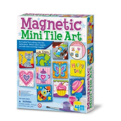 Explore the fun of arts and crafts with the 4M Magnetic Tile Art set. Create works of art, attach them to tiles and apply magnets to hang them on any metal surface. This magnetic tile art set includes tiles, magnets, a paint strip and brush. Tiles make ideal fridge art, or can be safely attached to a locker door for a unique personal touch. Each tile measures 2-inches by 2-inches, making them attractive gifts for friends or family. Recommended for ages 8 years and up.