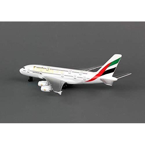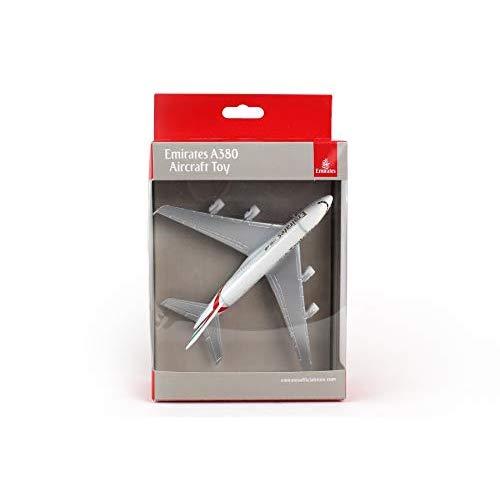 The Airbus a380 is the largest and most environmentally advanced commercial aircraft in the skies! The Emirates double-deckeer seats up to 517 passengers and is the flagship of the fleet. Since it's maiden voyage to new York in August of 2008, Emirates - the largest a380 operator - has ex[anded its network to additional destinations. The model is approximately 6 inches in length and has a 6.5 inch wingspan.