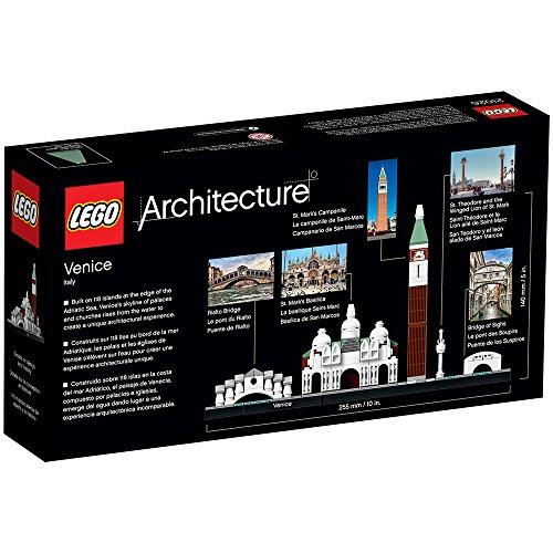 Recreate the historic, architectural magnificence of Venice, with this realistic brick model. The LEGO Architecture Skyline Collection offers models suitable for display in the home and office, and has been developed for all with an interest in travel, architectural culture, history and design. Each set is scaled to give an accurate representation of the comparative size of each structure, with true-to-life color depiction. This set features the Rialto Bridge, St. Mark's Basilica, St. Mark's Campanile, St. Theodore and the Winged Lion of St. Mark, and the Bridge of Sighs, and is finished with a decorative "Venice" nameplate. This inspirational building block set also makes a great gift.