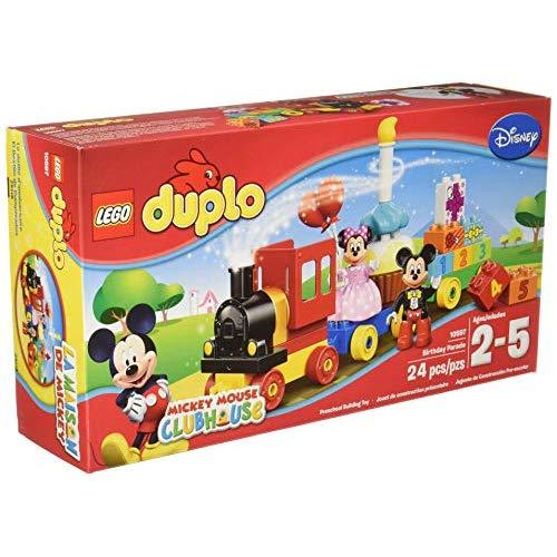 All aboard the Mickey Mouse Clubhouse birthday train as Mickey and Minnie throw a parade in your honor! Load up the train with everything you need for the perfect birthday party—a buildable cake, balloons and decorated gift bricks. How old are you today? With decorated age bricks numbered from 1 to 5, Mickey and Minnie can bring birthday fun year after year. Young children will love the endless birthday role-play opportunities of this LEGO® l Disney toy and developing their construction skills with the big, bright LEGO DUPLO bricks designed especially for budding builders. Includes 2 LEGO DUPLO figures: Mickey Mouse and Minnie Mouse.