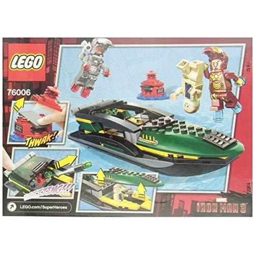 Stop Killian from getting away with LEGO Marvel Super Heroes Iron Man and War Machine. Blast the boat with the exploding buoy, fire the dual missiles and attack with War Machine's shoulder cannon. Includes 3 minifigures and a weapon: Aldrich Killian, Iron Man with Mark 42 Armor and War Machine with shoulder cannon. 195 Pieces.