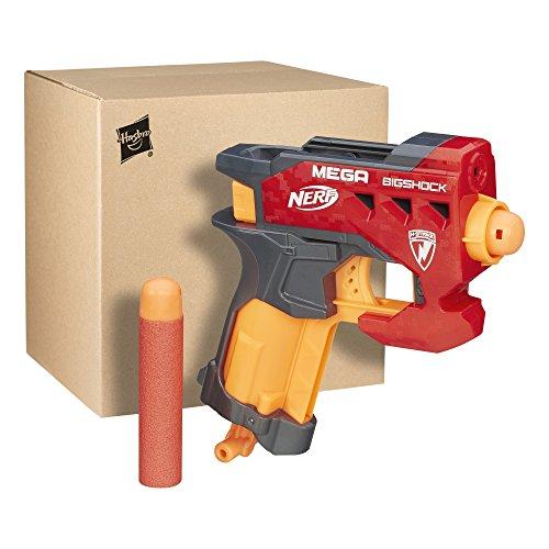 Your battles are about to get Mega bigger at a mission-ready size! The BigShock blaster has the same high performance as other N-Strike Elite blasters, but it features mega-sized power in the palm of your hand! You’ll dominate the biggest Nerf battle yet single-handedly with the one-handed power of the BigShock blaster. You can store a dart in reserve in its storage compartment, and it comes with 2 Mega Whistler Darts that scream as they fly! Hit the battlefield with Mega power with the BigShock blaster!