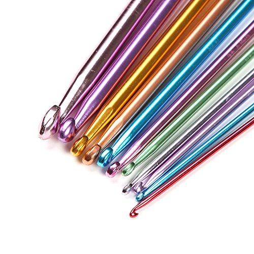 yueton 11 Different Size 10.5" Multicolour Aluminum Tunisian/afghan Crochet Hook Needles (Pack of 11, 2.0mm-8mm)